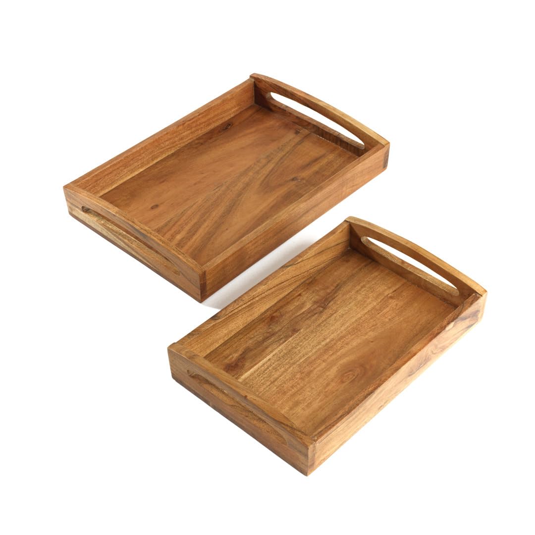 Perfect for Display: This Large and Small Tray Set of Both large (35.5 x 25.5 x 6 cm) and small (30 x 20 x 5.5 cm) as a beautiful display, showcasing its grain while serving as a practical food tray.